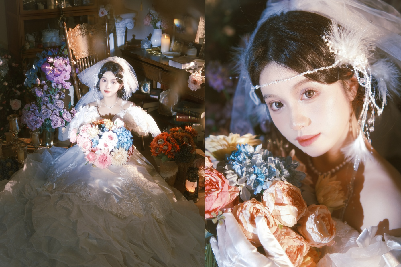 鲜花复古婚纱